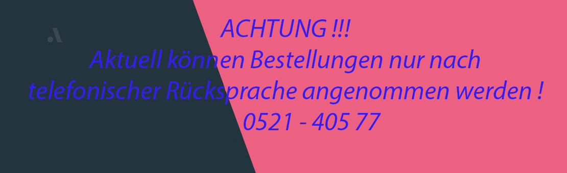 Aktuell können Bestellungen nur nach telefonischer Rücksprache angenommen werden !!